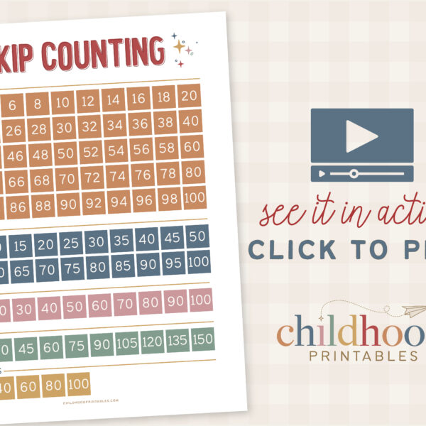 I keep this “Skip Counting Poster” in my kids morning binder so we can review it as part of our morning routine. Its great for getting in a quick review each morning or to reference during a math lesson.